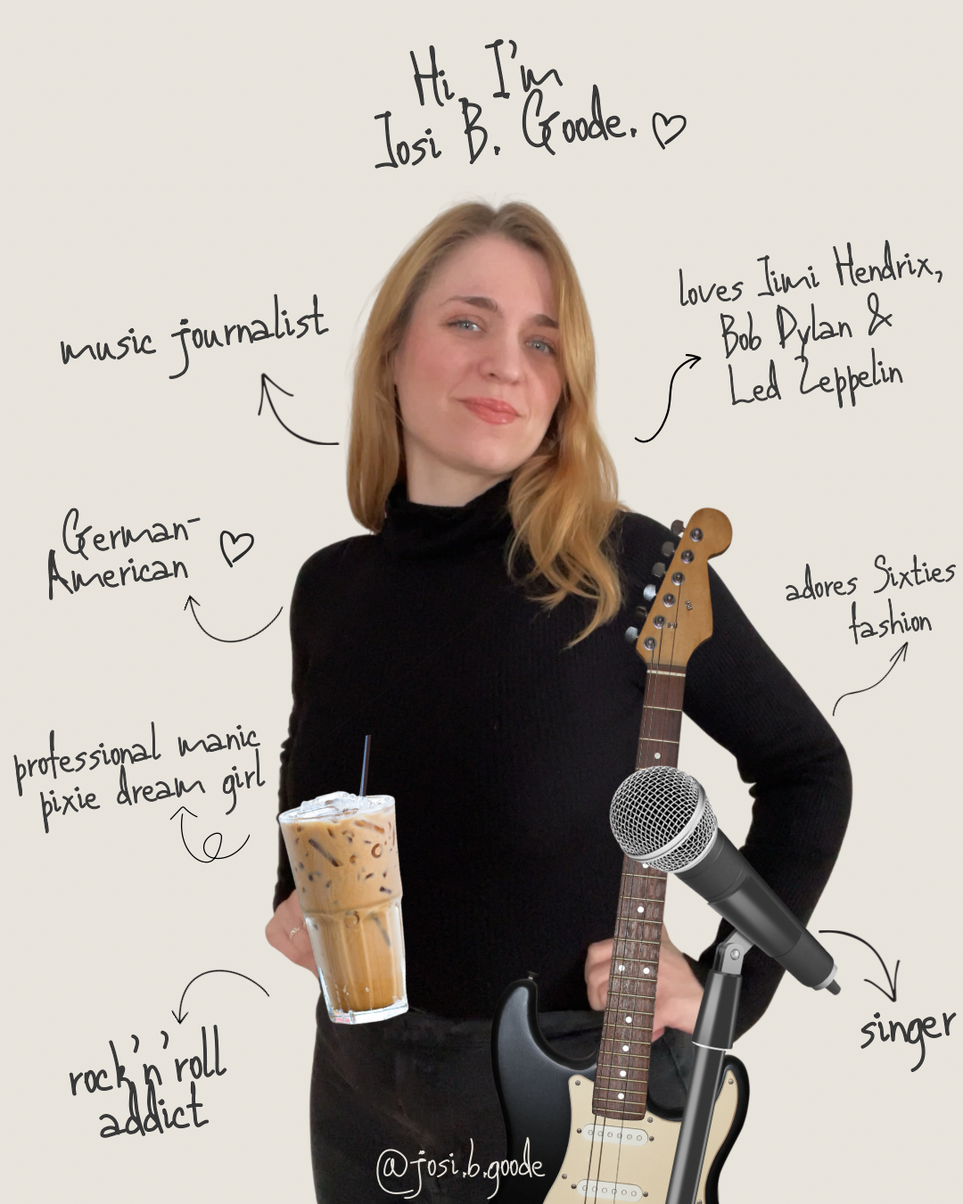 🎸The vibe: Something in between School of Rock, Almost Famous, Help (the Beatles-movie) and Sing Street. My goal: to create a community of fellow rock chicks (and cats and unicorns) who are fucking proud to be who they are and to love what they love. If I have learned one thing from my musical heroes, it’s that life was never about fitting in, it’s about standing out!